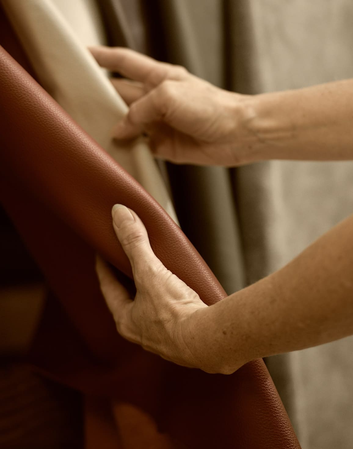 في تريكا باريس، تتميز خبرتنا في صناعة الأسرّة المصممة حسب الطلب بالتعامل الدقيق مع الجلود عالية الجودة، وهو عنصر أساسي في عمليتنا الحرفية. ندرك تمامًا خصائص كل نوع من أنواع الجلود وجمالها، مما يضمن اختيار أجود أنواع الجلود فقط. ويعتمد هذا العمل الدقيق على فريقنا المتخصص من العمال المهرة، بما في ذلك خياطون ماهرون وفنيون متخصصون في التنجيد، الذين يتعاونون بسلاسة لتحويل هذه الجلود الاستثنائية إلى روائع فنية وأسرّة فاخرة مصممة خصيصًا.