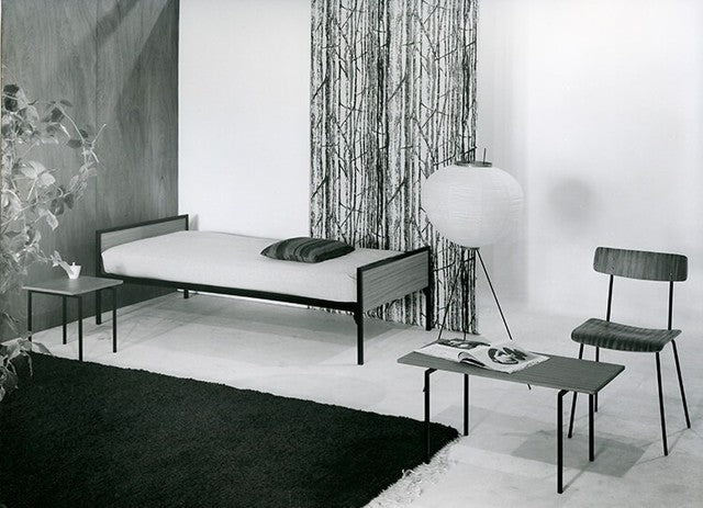The Ariadne is the first bed that Friso Kramer designed for Auping. It is made of steel, its head- and footboard is made of wood with bended edges. It is very characteristic for the sixties. The Ariadne has slim and tapered legs.